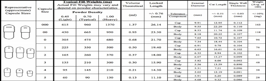 Capsule supplements are usually segmented by their type of capsule size. Here is a chart of the standard ones: